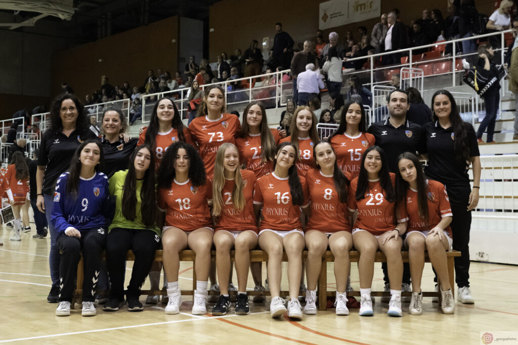 D'esquerra a dreta i de dalt a baix: Cristina Puñal (delegada), Begoña Tejero (delegada), Daniela Ortiz, GiselaMárquez, Martina San Felipe, Ana Delgado, Adriana Rodríguez, Joel Gros (ajudant), Marta Rodríguez (ajudant), Paula Salmerón, Ariadna Peris, Martina Gisbert, Laura Rodróguez, Paula Granados, Núria Álvarez, Alejandra Guerrero i Martina González.